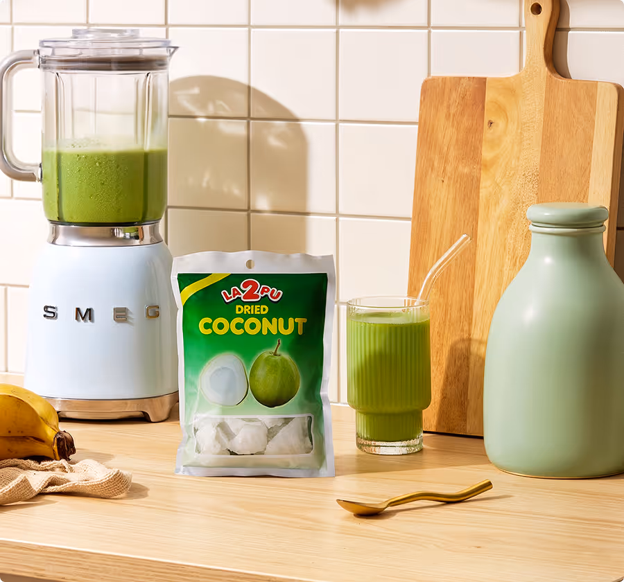 Soft coconut pieces, gently dried for a smooth chew
